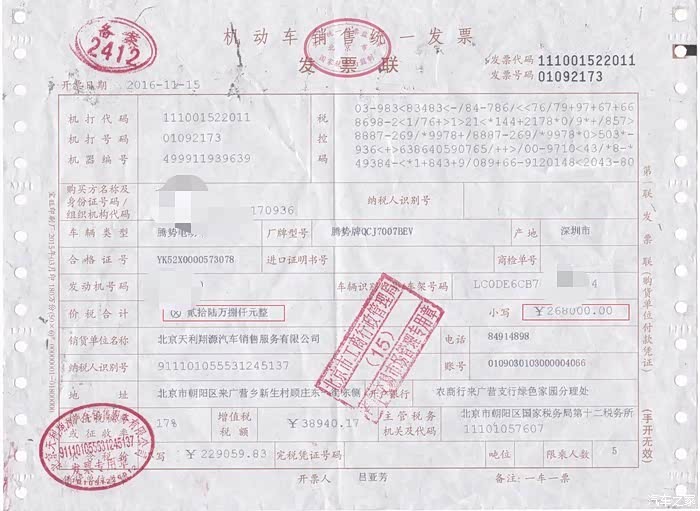 这台车是2016年11月注册使用,我接手的时候刚刚过了四周岁的生日,原籍是北京,私家一手车,里程8万公里;平均一年两万公里,跑的略微多点了,也算正常范围内。车型是2014款的尊贵版,指导价39.9万,发票价26.8万,补贴了13.1万。