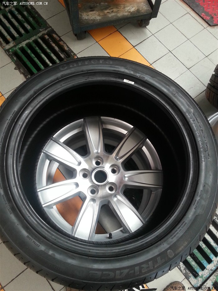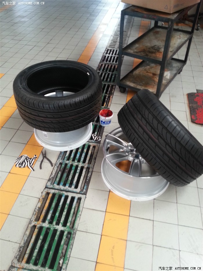 今天去了4S店,看他们装轮胎好费劲啊,18寸是8J的钢圈,装上9J宽的胎,难免有些费劲,不过还是可以装的!