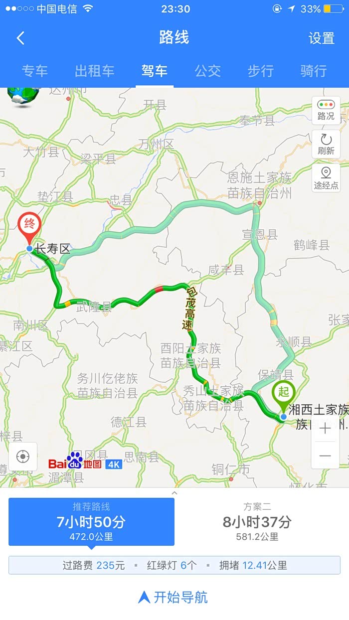 第二段路,百度导航上提供了两种方案,一个是经过长沙-常德 到湘西,第二种是经过衡阳-邵阳--怀化 到湘西,第一个方案 我几年前走过,有一段高速(好像是长沙-常德)特别不好走,第二个方案,没走过,想问问有没有走过的车友,哪个方案更好。