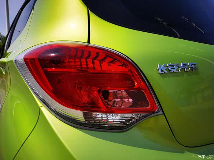 尾部设计很俏皮,尾灯很有特点,像两个眼睛一样,而且颜色也亮,车屁股凹凸有致,感觉特别亲,女生很喜欢这种设计。