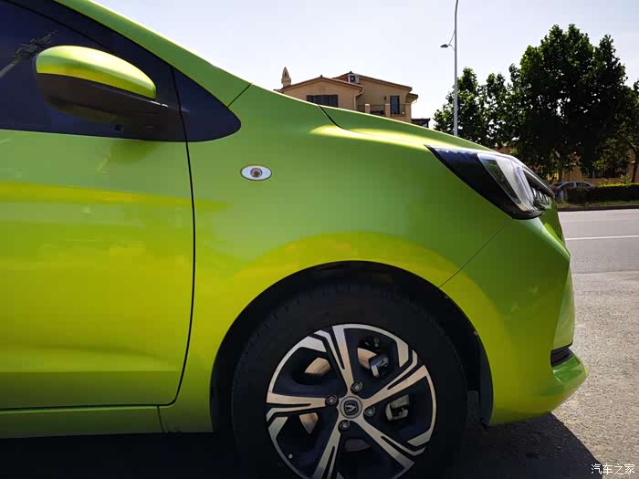 侧面看着也不错,轮胎的轮轴很时尚,车身漆面也很靓丽。