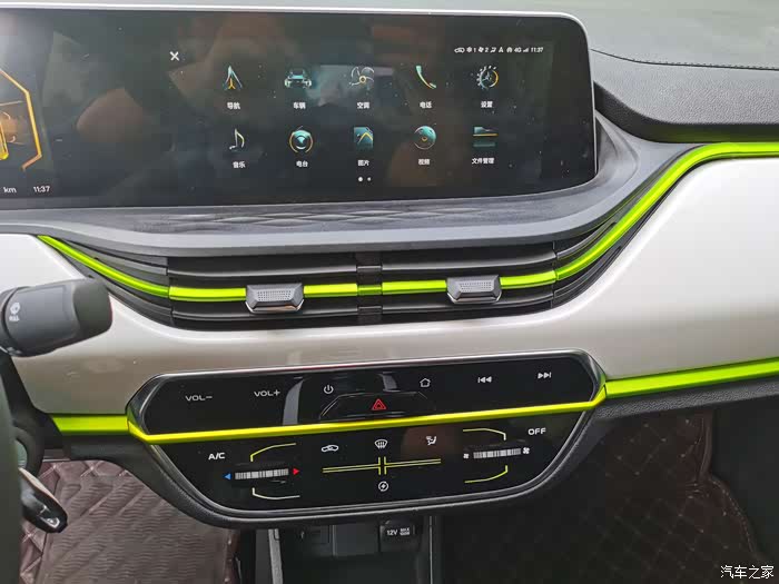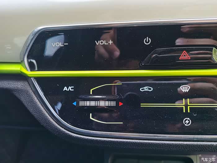 车上的灯光按钮,挺细致得,空调出风口也用了这个颜色得包边,很时尚。