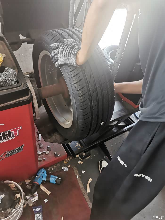 前天去朋友店里换的,原车轮胎花纹很深,裂口也很深,还是决定全换了。他们也是米其林为主的,说是原车的轮胎叫什么悦3的,可能是配方不好,就是喜欢开裂,现在都改进了,我信了,但我还是决定换玲珑的。米家的一个800,玲家的320,这差得有点大,跑了八十多公里试了一下,感觉上却是差得没价格这么大,换胎的师傅说胎噪肯定大,我基本没感觉出来。换的过程都差不多,拆胎装胎平胎,技术熟练,两个人一会儿就干完了,上几个图片,新胎德州产的,要是加保的话得380,鼓包包换那种