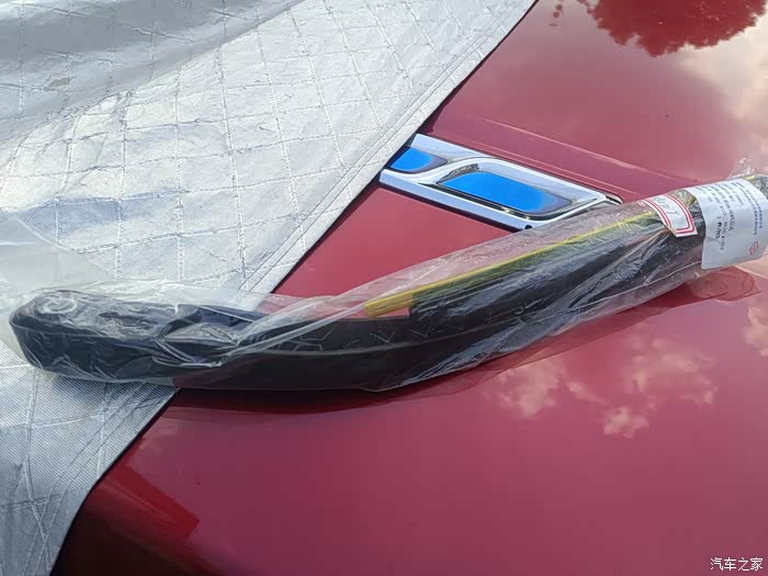 新的雨刮器和后档上现有雨刮器对比一下,完全一样。