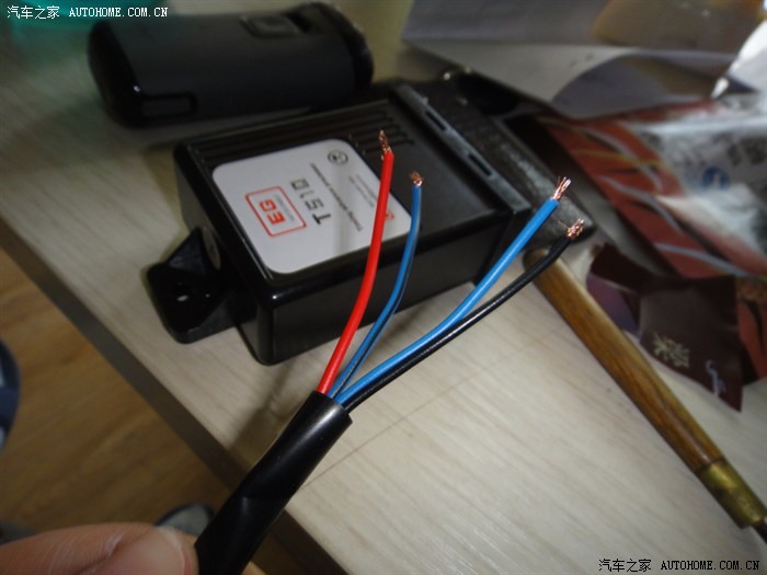 红色和蓝色,两根我直接接入了天燃气电磁阀的火线(红色),红色是12V电源,电磁阀正极刚好12V,蓝色是取电磁阀的开关状态,必须接入火线。