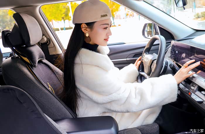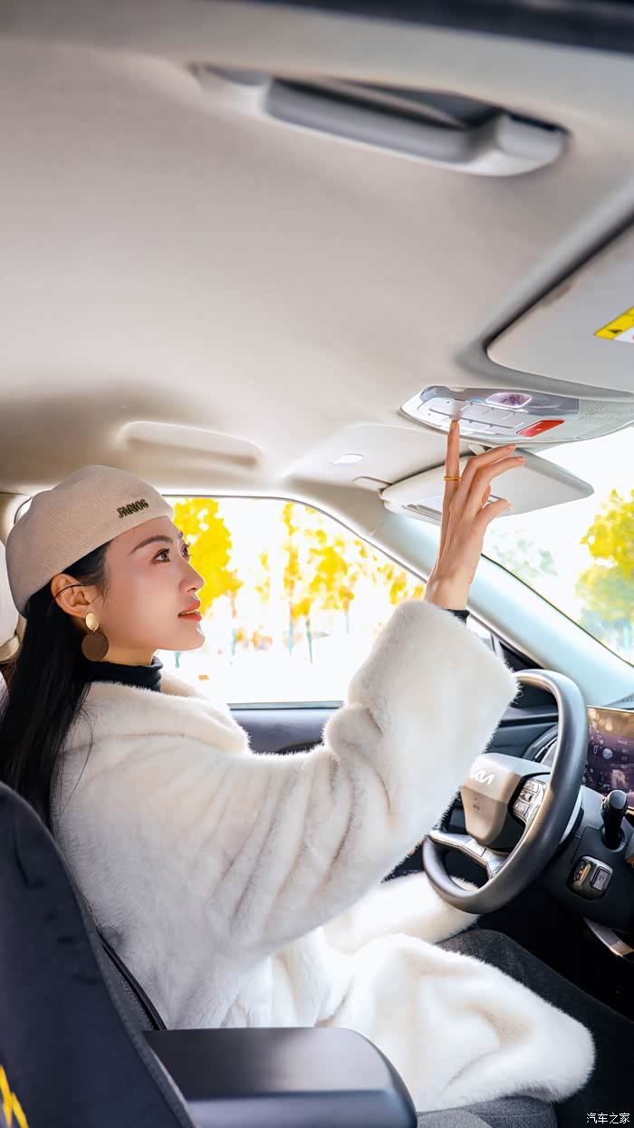 我们在拍摄间隙坐在车里休息,Yaaa 调了调车内的灯光和空调。我看她操作中控屏幕时挺利落的,指尖一划就能找到功能。她跟我说,这车用起来特别顺手,按键和屏幕的位置都刚好在舒服的地方,不用特意去研究说明书。
