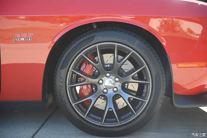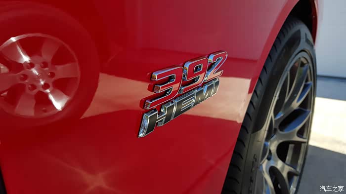 392 HEMI。392的意思是发动机排量392立方英寸(英制单位;换算过来就是6.4L排量),