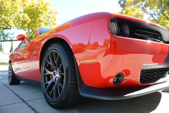 看了看RT的售价,觉得可以接受,5.7L Hemi V8发动机也很给力。不过随着了解的增多,发现对于挑战者5.7L只是入门偏上的配置,在5.7L上面还有大哥6.4L Hemi 392 引擎,在往上甚至还有新晋老大哥SRT Hellcat 6.2L机械增加(707匹马力)。内心的躁动使得期望提升,内心深处开始对6.4L的Scat pack长草;在了解到Scat Pack只是配备了4活塞的Brembo刹车,胎宽也只有255之后,抬头向上看了看,发现加不多的钱就可以升级到SRT392,可以带来几处明显的提升,比如前6活塞后4活塞的Brembo刹车,Bilstein高性能3模式主动阻尼减震系统,SRT的performance page等等。再往上的Hellcat过于暴力,而且供不应求导致缺货,需要加价购买,所以就没有考虑。就这样预算一步步提高,此时内心已经基本拍板SRT 392。