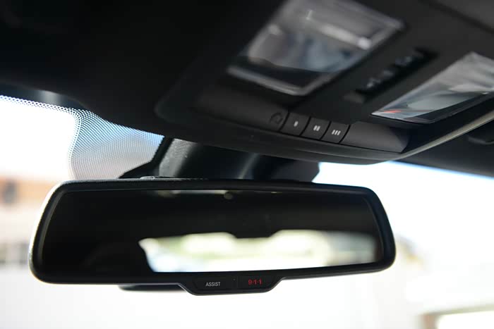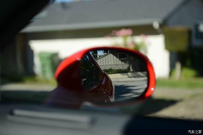 如果行驶途中,盲区有车辆出现,测试镜角落会有一个黄色的三角形提示,还是非常好用的功能,很准确。虽说这车视野其实很不错,但是多这个功能算是锦上添花。