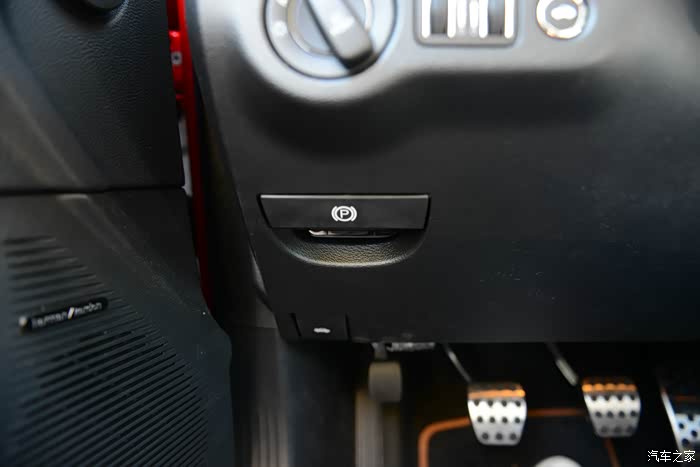 脚刹驻车,写着P的那个扳手是用来释放脚刹的。