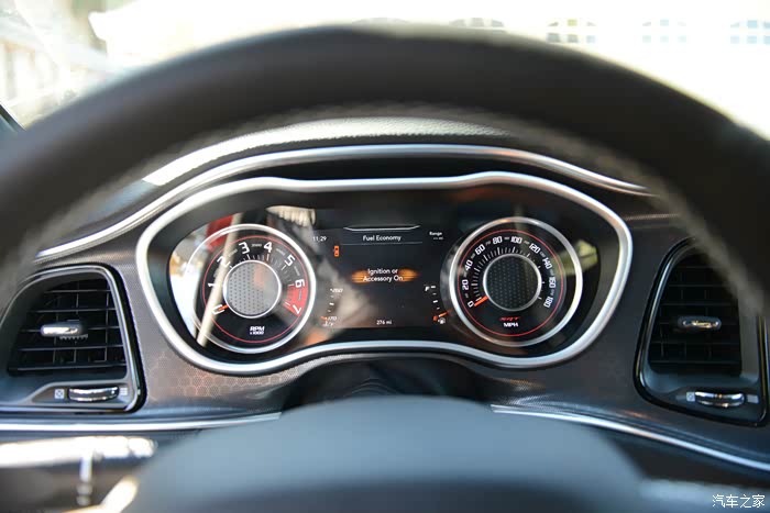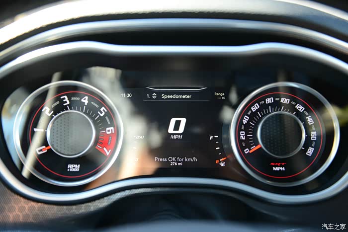 右边是速度表,最大示数180MPH(288 KM/h)。