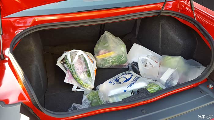 超大的后备箱,非常能装。一周的菜装进去还空空荡荡。