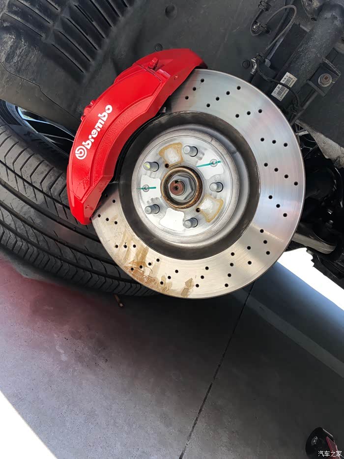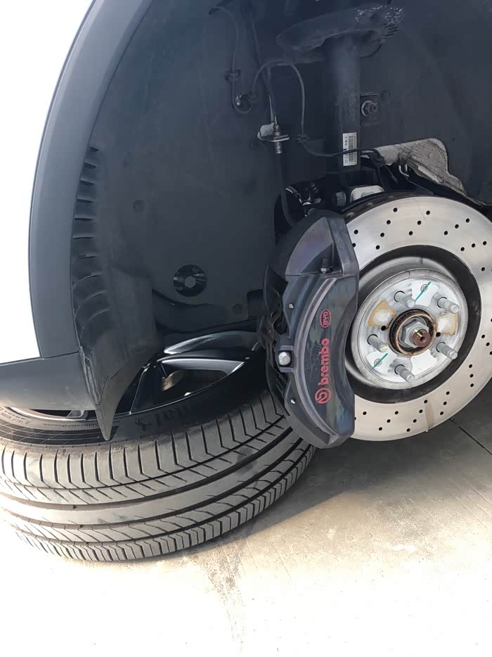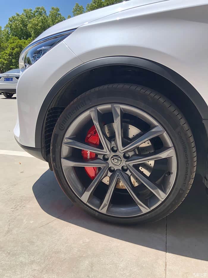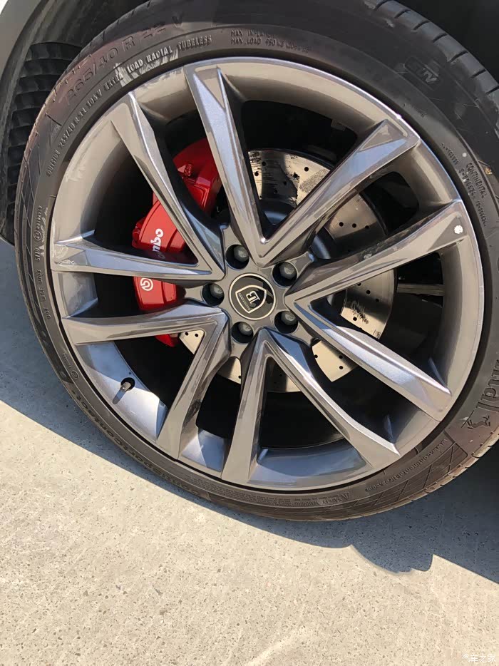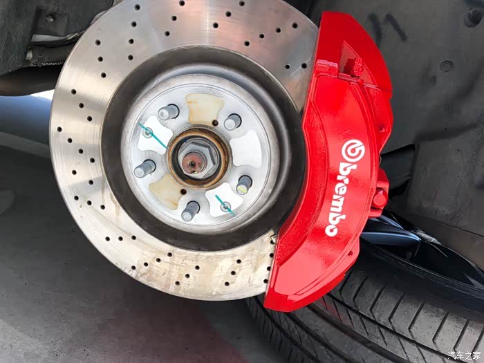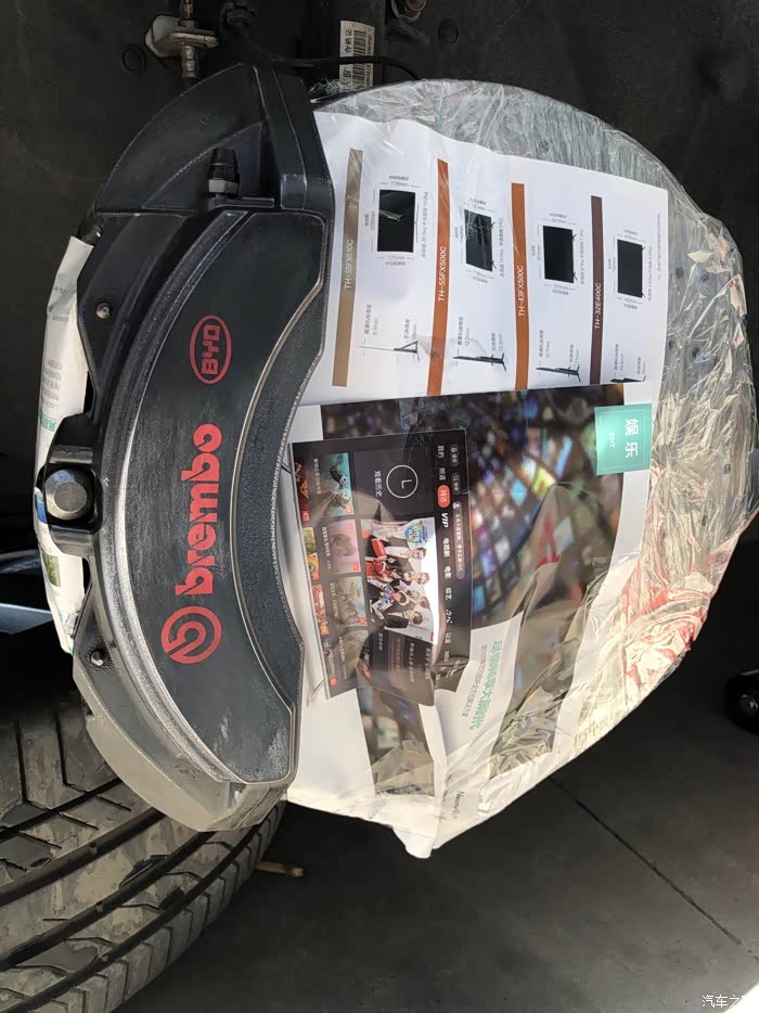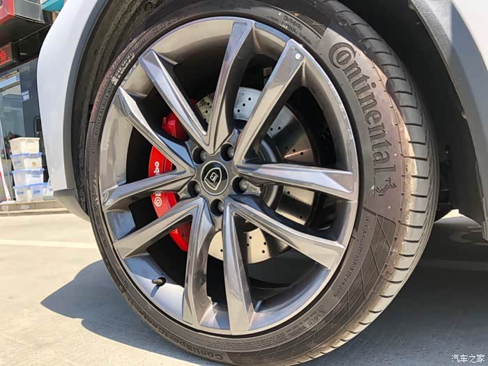 。唯一让我有点意见的是,这卡钳黑灰色的外观,真的有点大跌身价,对不起布雷博专业赛车级刹车卡钳的品牌档次。因为是布雷博为比亚迪唐DM定制版,所以,在成本上也有了一定的降低,不像BBA的布雷博卡钳,大红的、荧光绿的、姹紫嫣红、时尚感十足!