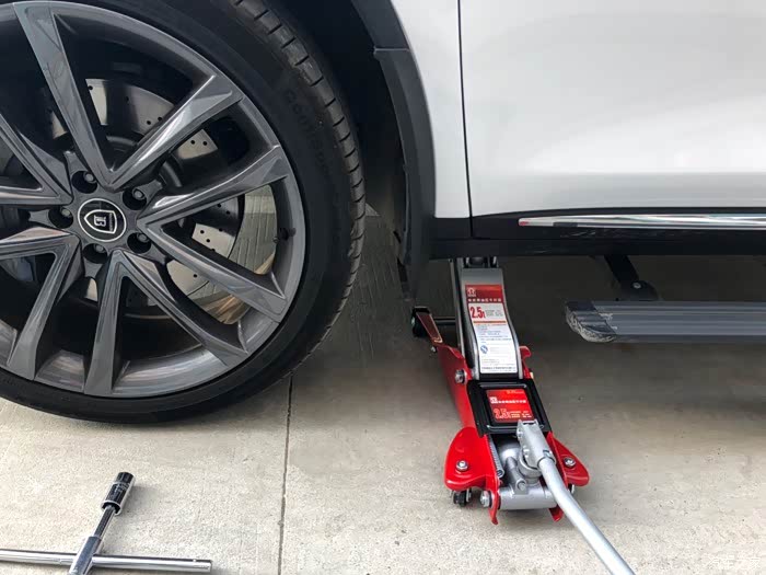 动手之前,先准备好千斤顶、千斤顶要买2.5吨沉重的、唐DM的车子太重了、有条件的直接买3吨承重的!