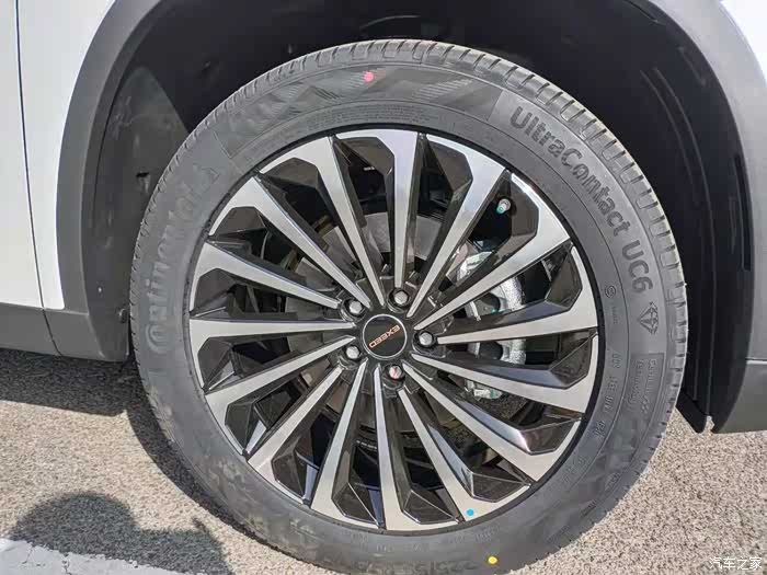 一线品牌马牌轮胎,19寸镰刀式大轮毂,停在那都能感觉到动感。