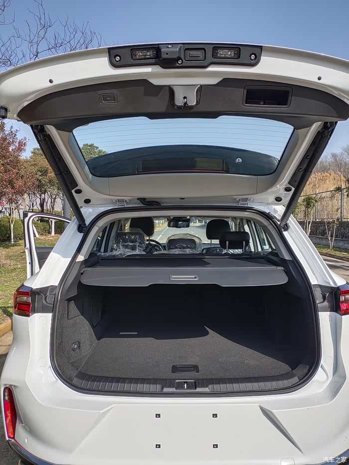 后备箱上中下三层置物空间,储物空间超大。后备箱俩个粗壮的液压杆给人结实感。