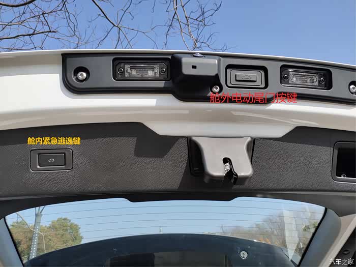 除了常规的电动尾门按键,TXL舱内还放置了一个电动逃逸按键,以便不时之需,为这个设计点赞。