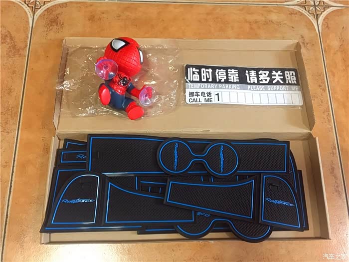 今天到货的睿骋CC储物格内橡胶垫,卖家还送了一个能吸在玻璃上的蜘蛛侠。因为睿骋CC储物格里大部分都是硬塑料材质的,放东西过颠簸路段会有异响,原厂十几万的车这个细节做的不太人性化,只能后期用改装弥补了。