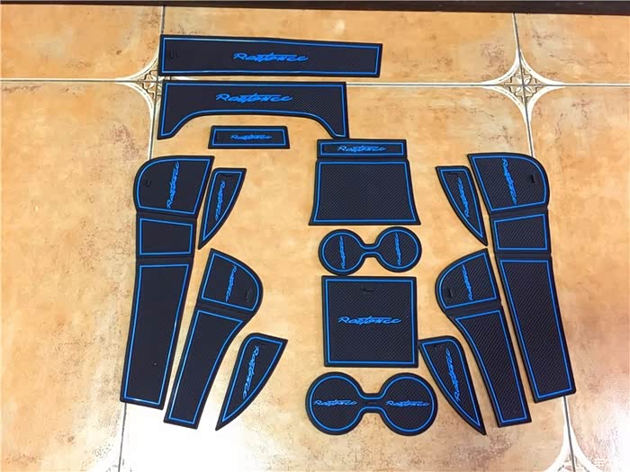 还好卖家有编号说明,要不然真的要懵B了。哦,对了,这个脚垫有黑红,黑蓝和黑绿三种颜色可选,为了配合睿骋CC的冰蓝氛围灯,所以我选了黑蓝色的胶垫。