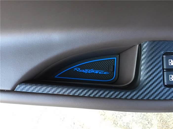 车门板上储物格的橡胶垫,如果右边放水杯的橡胶垫能网上延长一点到水杯的侧面就更好了,因为水杯放上去之后是斜着的,水杯侧面也会接触到塑料区域。