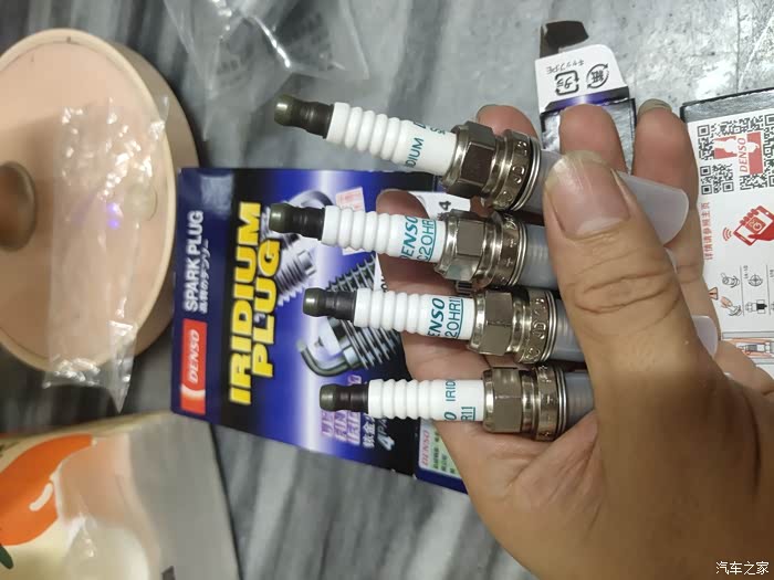 顺便买一套火花塞一起来换了(电装铱铂金火花塞SC20HR11的热值6,能用8-9万公里一换,天津那家买的有知道的吧?😁)。