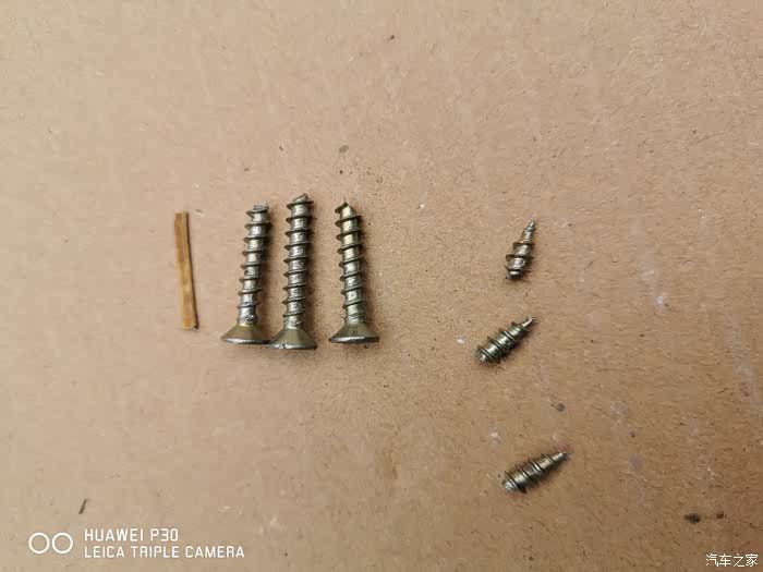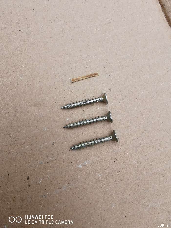 既然有螺丝孔位置,那就好办了,树枝测量好长度,找三个直径差不多螺丝,咔嚓,如下图,