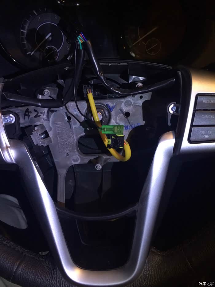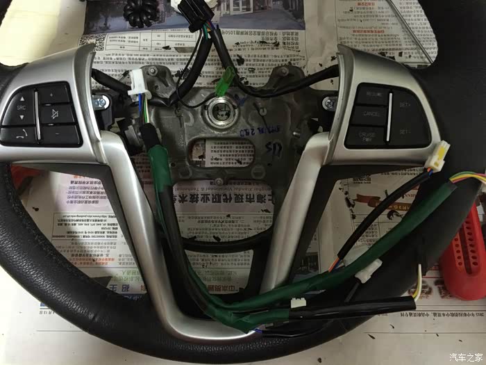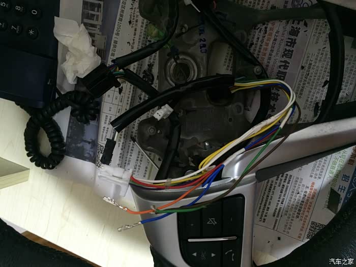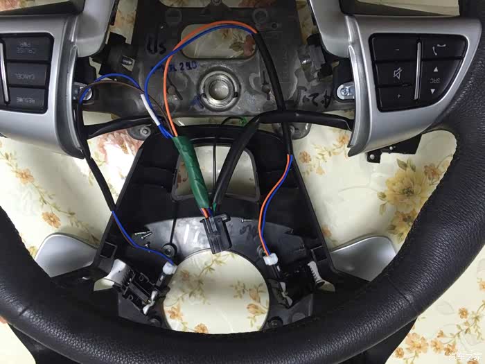 想偷懒不想加两边的游丝接线,拆方向盘音量按钮,结果很失望。音量、选曲、蓝牙开关均为电阻值判断,没有独立的接线。放弃此打算。