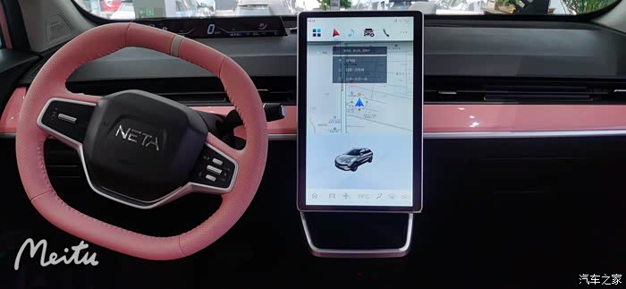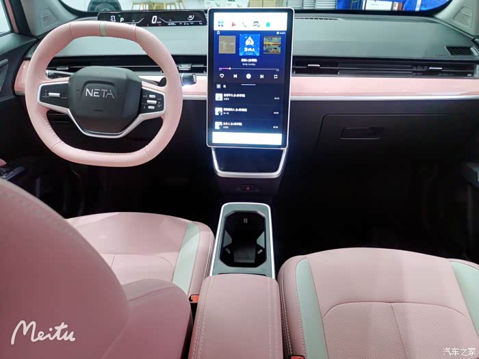 然后来到内饰,整个内饰布局更时尚,配备12英寸全液晶仪表板和14.6英寸垂直触摸屏,内置信息非常完整,使整个内饰技术感,内饰颜色和外漆颜色相同,粉红色,更受女性消费者青睐,在材料方面,双辐方向盘是皮革包装,触摸非常精致,操作更方便,其他配置也特别丰富,配备语音识别控制系统、车联网、倒车图像、上坡辅助、自动停车、后停车雷达等实用功能配置,为用户带来极大的方便。