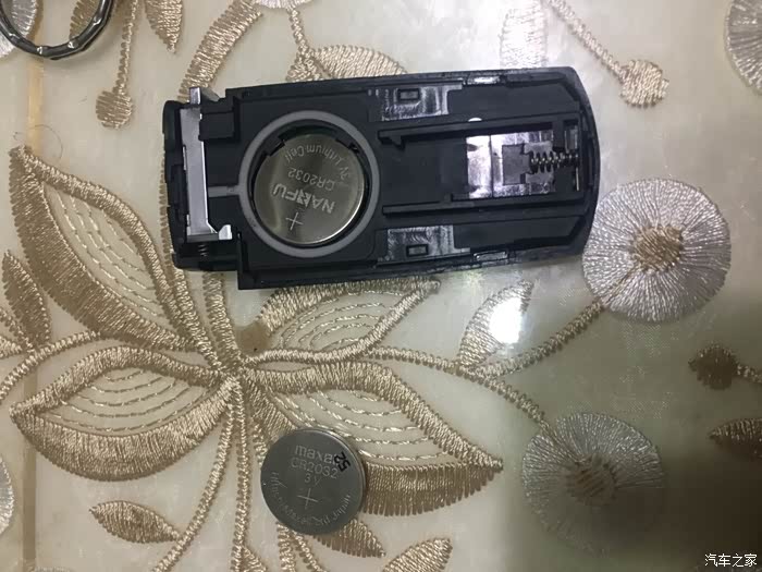知豆D2已经买了1年半了,最近锁车出现不灵敏,距离缩短情况,考虑可能是汽车钥匙电池电量衰减,果断更换,电池型号是CR2032,上图