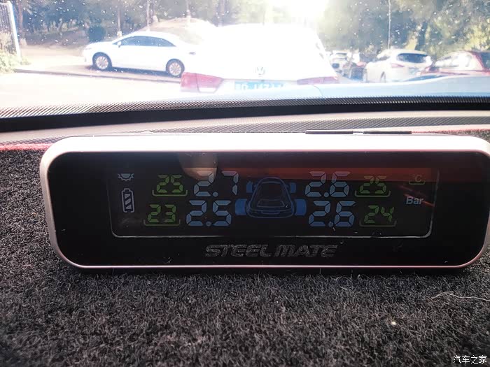 胎压监测显示器外形小巧,摆在仪表台上并不是很占空间
