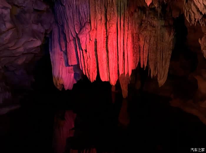 溶洞里面的水非常清,可以从水面的倒影清晰的看到上方溶洞的样貌