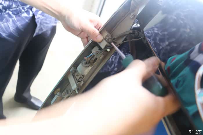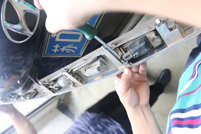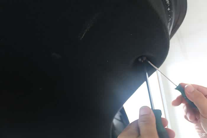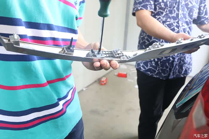 直接可以看到电镀条背后的螺丝,将螺丝拆卸下来