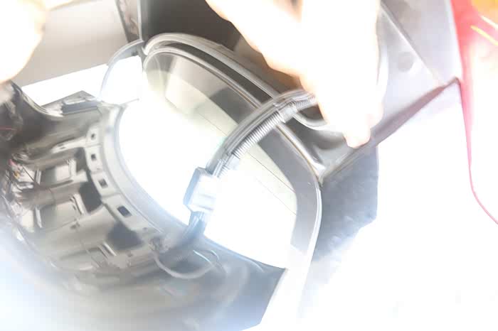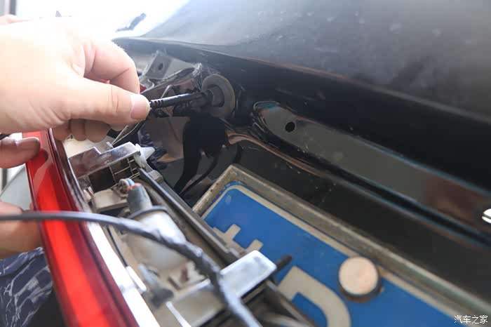 贯穿灯后面的线束插头,从这个位置穿线进去