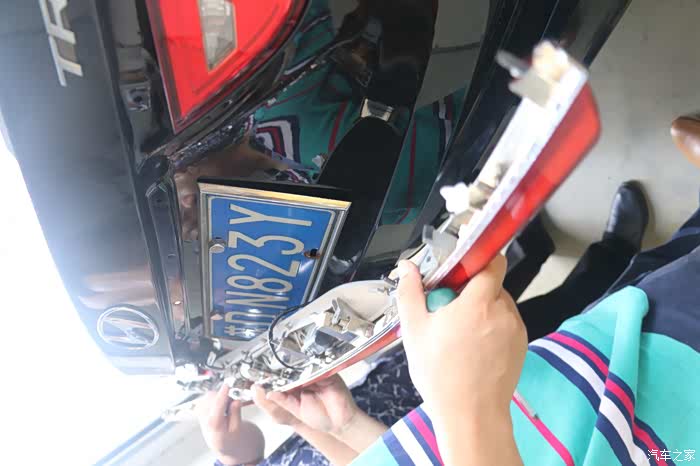 将改装贯穿尾灯替换装上去,把刚刚拆下来的小部件再装到贯穿灯后面