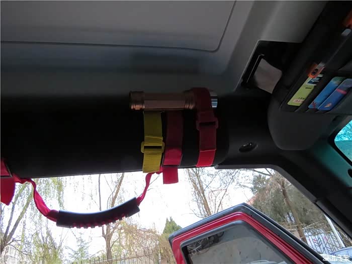 主装驾驶侧拉手和固定带,本想安装野猪拉手可是装不上,装不上