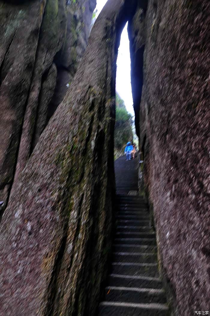 一线天,高度近100米,斜长120米,峡谷宽0.7到1米。这座石阶,又高、又陡、又长,登上它,不仅吃力,而且还有点险。要登299级石阶才能爬上这一线天。299级石梯寓意长长久久,299,谐音是什么,对了“爱久久”,爱情天长地久。