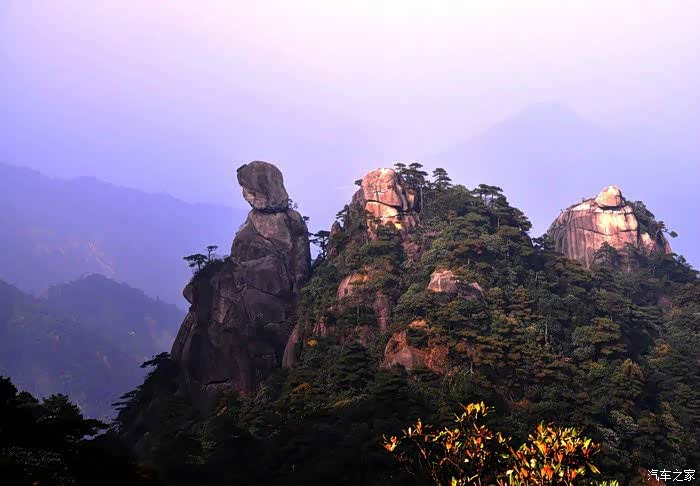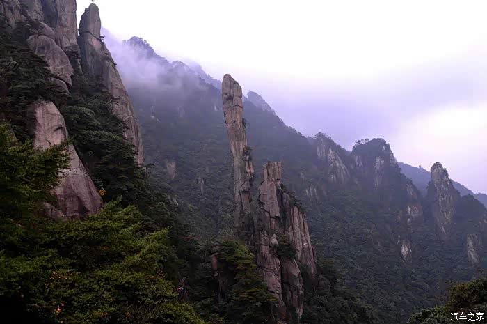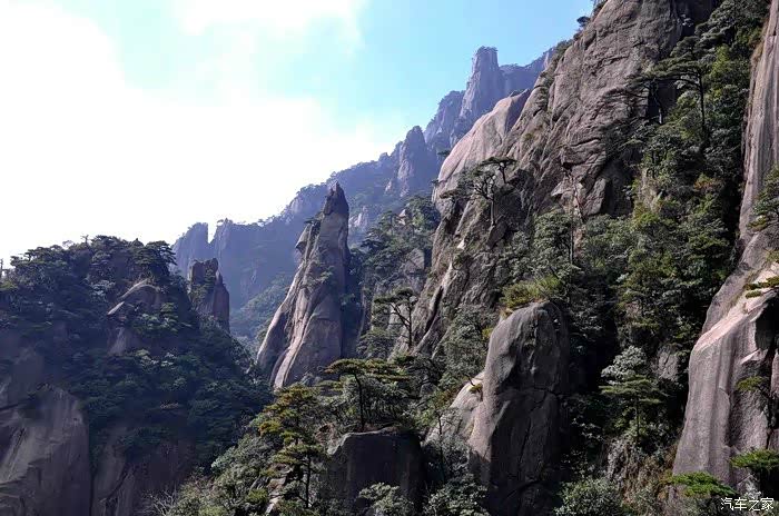 三清山全山山体由花岗岩构成,山上石峰千姿百态,景观类似黄山,又因为毗邻黄山,所以有黄山的姐妹山之称。看仙气缭绕的群山。