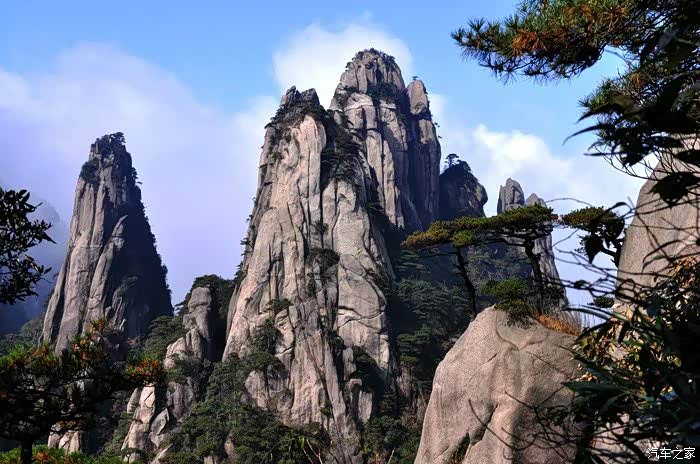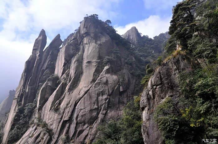 三清山与黄山有几分相似之处。由于地域相近,这两处可能是属同一时期地壳运动的产物。虽说“五岳归来不看山,黄山归来不看岳。”但在翻越过一座座山头之后,让我深深地感觉到:三清山除了地质名山和道教名山的头衔外,那种新颖独特的山峰造型让我们感到它确实别有一番风味。