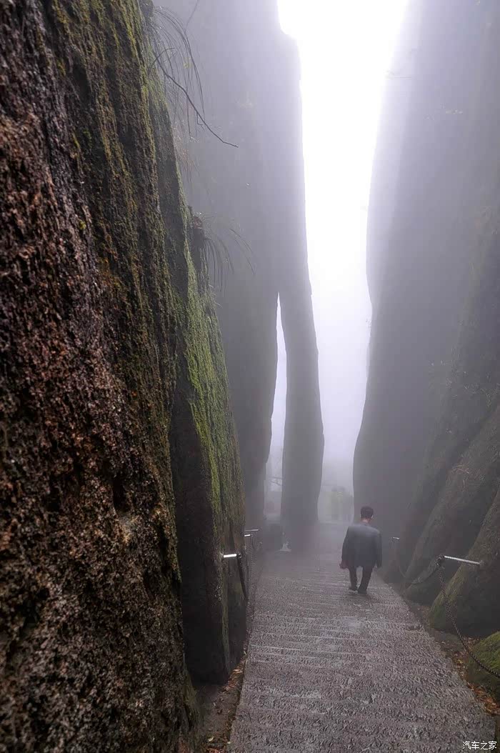 站在路边往下看,看不见渊深几许,但一定是深不见底。在茫茫雾霭中,人宛如穿行于诗画之中。