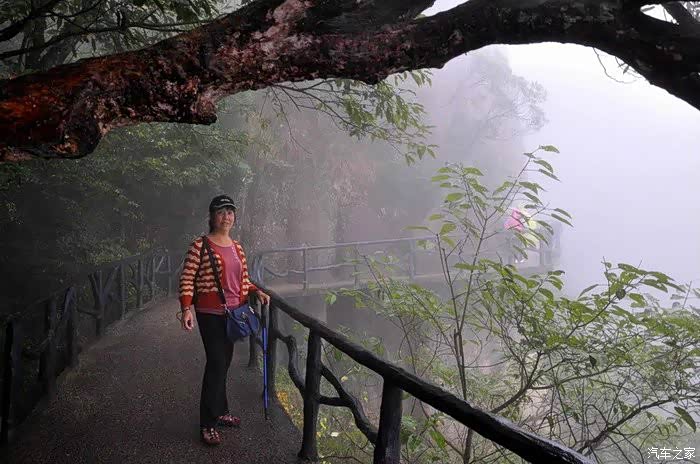 山上多变的天气也时常给我们惊喜:一会浓雾扑面而来,顿时就像下起了蒙蒙细雨,山崖上、栈道边的树叶花草都是湿漉漉的,我们的头发甚至眉毛都凝挂着细小的水珠。