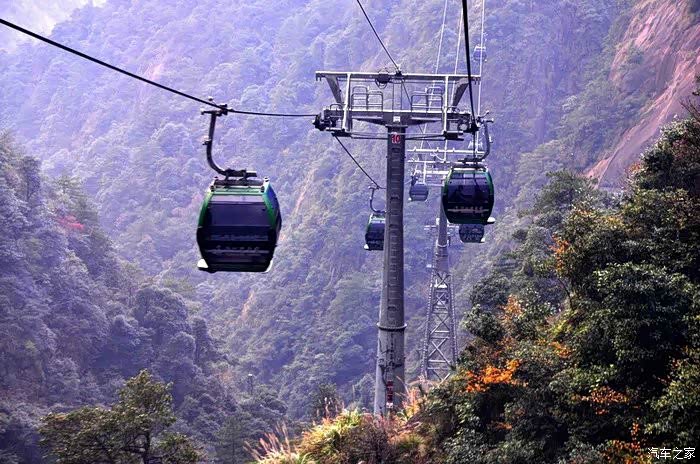 随着缆车的上升,两侧山峰已峭壁林立,怪石嶙峋。四周林木苍郁,脚下幽谷千仞,景色壮观,不愧为世界自然遗产。