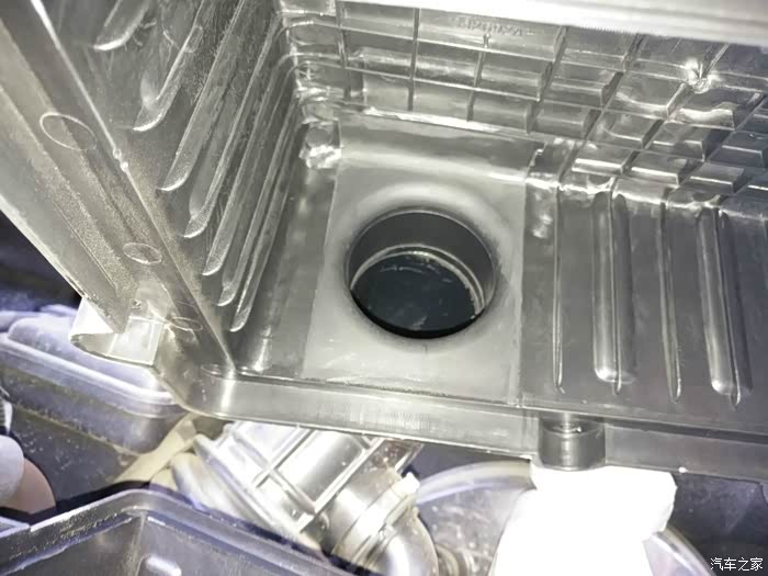 滤清器拆下后,滤清盒子内就能看见进气的管子口子了