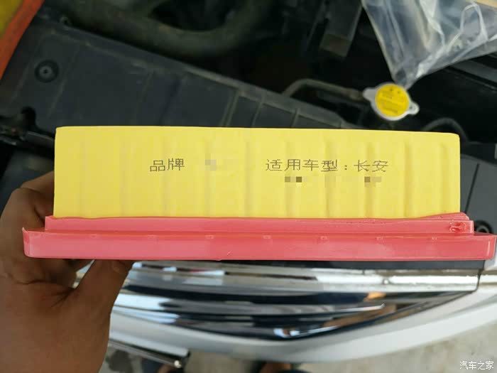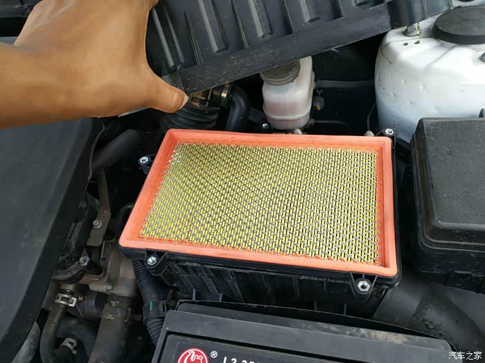 汽车进气全靠这个滤清器对所有空气中的杂质进行过滤,滤清器样式有很多种样式,逸动就是这种长方形黄色的
