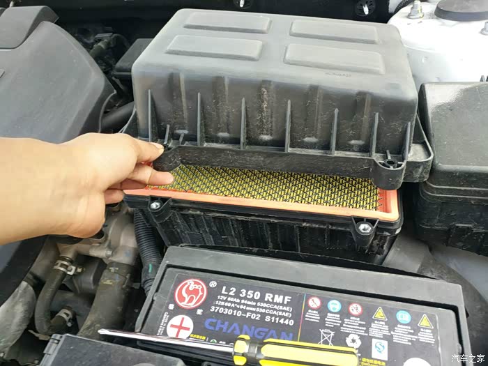 我的爱车是2016款手动风尚版长安逸动,去年12月份购入,至今已过去八个月之久,平时对爱车也是呵护有加,除了前往S店进行常规保养外,自己平时也会对爱车进行一系列检查及自己动手更换相对于简单的物件,这一切的成果都要归根于我哥,我哥的爱车是13款逸动,现在是四年半的车了,一点问题也没有,他的爱车一直以来都是八千公里换一次机油和两滤,其它都是他自己搞定,就因为信任长安车的可靠性,所以我也选择了长安逸动,并在我哥那里学到很多爱车DIY,首先得从最简单的下手,今日就是我自己为爱车更换空气滤清器,按理说八个月的车滤清器还未达到更换状态,但平时爱车经常在工地跑,爱车呼吸也受到了污染。空气滤清器主要作用就是过滤汽车进气中的各种杂质灰尘,所以平时大家也应该勤检查,勤吹扫滤清器上面的灰尘。这次主要是我给哥两个同时回到了老家,哥给了我一个新的滤清器,所以就自己动手把旧的更换掉了。更换滤清器过程相当简单,逸动滤清器位置处于电瓶后面,滤清器前端一根进气管,中间为滤清器,后端连接一根前往节气门我软管,滤清器盒子由五颗十字螺栓固定,整个过程只需要一把十字改刀就能完成对滤清器的更换,虽然简单,但自己动手既能节约钱,也是一种乐趣,所以今日就把这简易的DIY分享给大家,各位看官如不喜请勿喷。