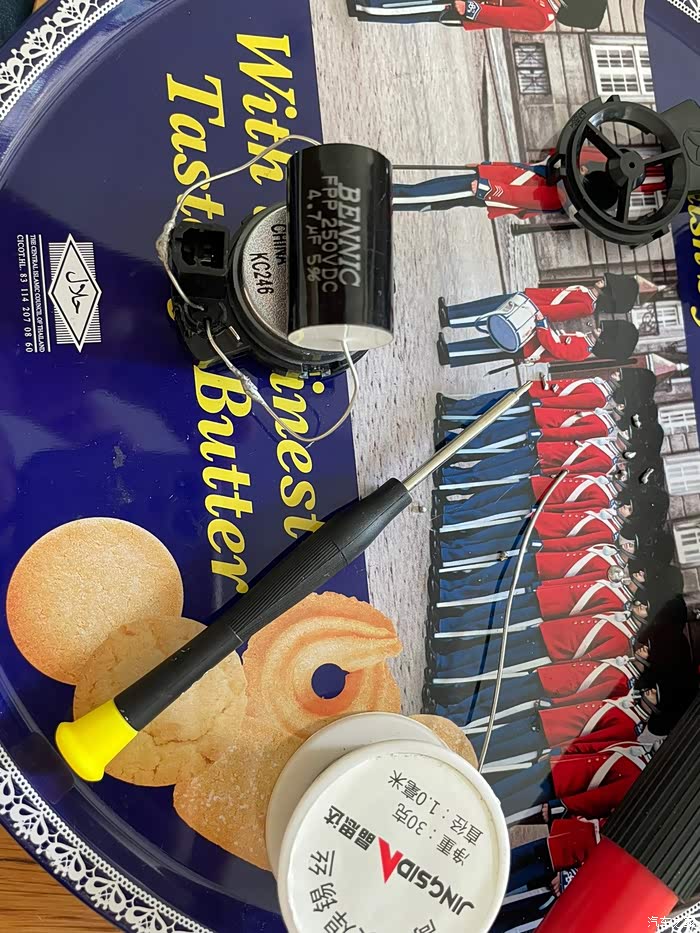 因为喇叭电容的作用是滤除低频信号,减少喇叭输出的失真;高音喇叭的频率响应决定了它只对高频信号有效,而对低频信号无效,如果电容质量差或电容容量不满足,无法过滤低频信号,低频信号也会一起进到高音喇叭,高音喇叭对低频信号输出就会产生失真。解决方法就是更换更好、更合适的电容。我量了尺寸,买了直径20mm,损耗0.06%,误差5%的金属化聚丙烯膜电容,仅大小是原电容的30多倍。