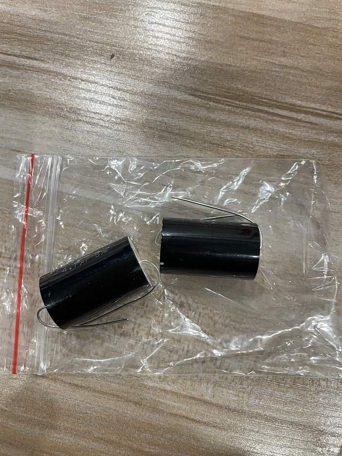 原车高音喇叭用的是5.6uf 50v的普通电容,高音效果不好,基本没有高音,更换直径20mm,损耗0.06%,误差5%的金属化聚丙烯膜电容,高音喇叭发音效果还行,低成本升级方案。