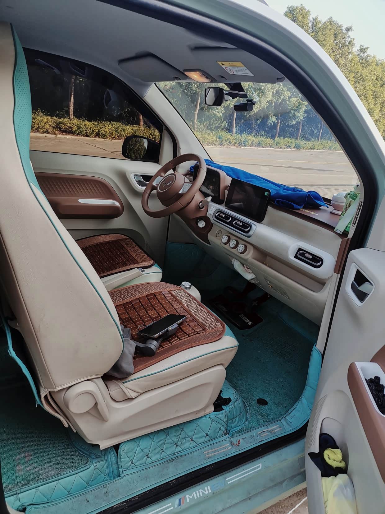这辆车内饰我选的浅色,看起来简洁大方,也很好打理,这辆车的功能不是很多,但是都比较使用,这辆车外观不大、但是空间很宽敞,特别是前排空间太宽敞了,最喜欢这个前排地板贯通的设计,在停车位受限的情况下,左右两边下车都很方便,非常的使用。