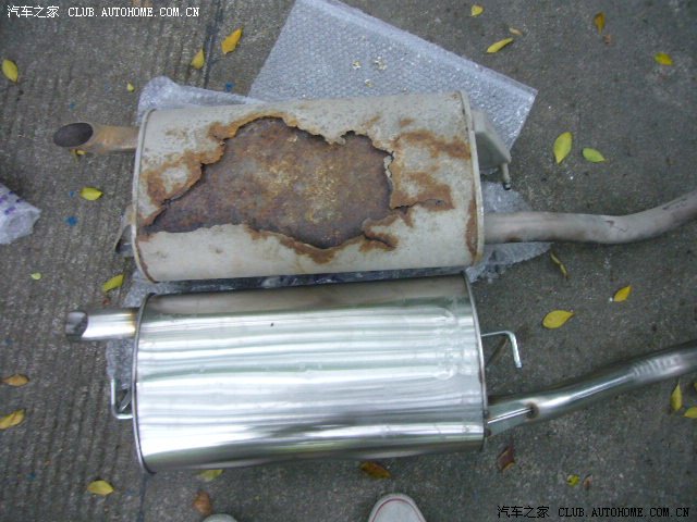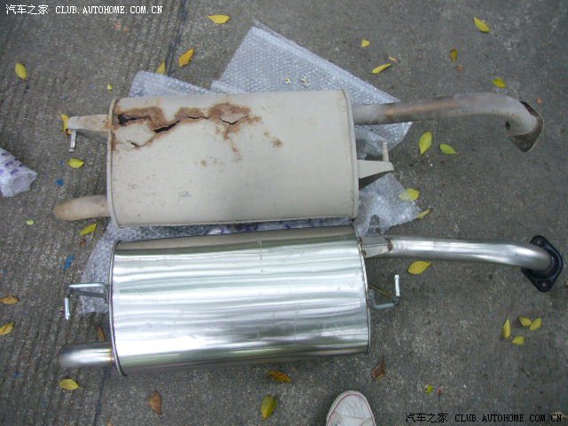 用了近四年的f3消声器早就生锈鼓包了,外层上下都有锈穿脱落,虽然内层还未穿透(排气声音未变大),但说不定哪天内层就会破了,还是趁早换新为妙。