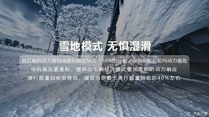 雪地模式是前后动力平均分配,即前后都是50%,这样做的目的是减小车辆动力不均衡所导致的失去抓地力,从而导致甩尾或者推头的现象发生。