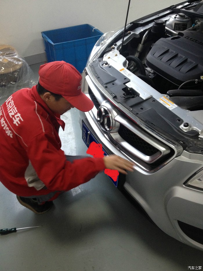 工人师傅在拆中网前怕划伤前保油漆,还特意帮我用胶带贴了一圈来保护油漆。(好认真的工人师傅给500个赞